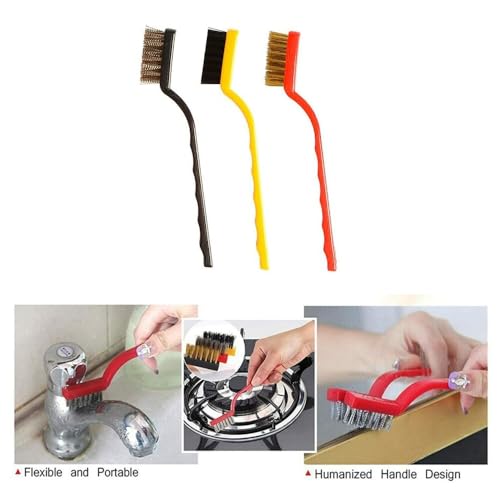 A4ARRIYAN Gas Stove Cleaning Brush Set- Brass/Wire/Nylon Brush, ||Chimney Cleaner|| Kitchen Cleaner for Gas Burners, Hob, Knobs, Grates & Household…