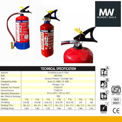 Specification: Mundet Wala ABC Powder Type 4 KG Fire Extinguisher for Home | Fire Safety for All Types of Fire for Home, Office & Car | Fire Extinguisher for…