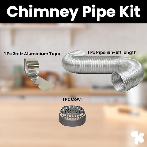 Specification: AMPEREUS® Chimney Pipe 6 Inch 6 Feet with Cowl and Tape | Durable & Heat-Resistant Exhaust Pipe for All Kitchen Chimneys | Suitable For All Brands…