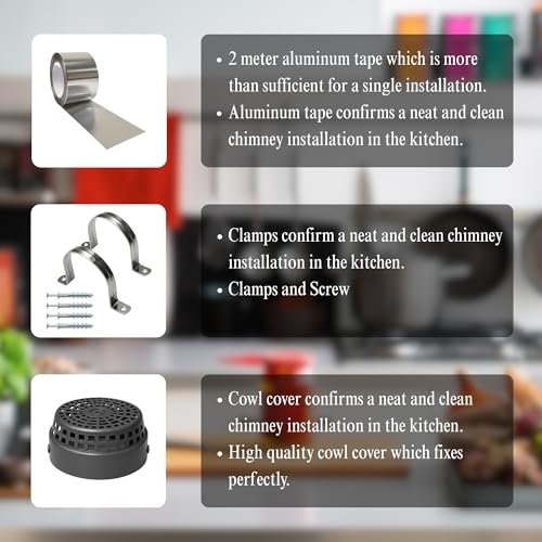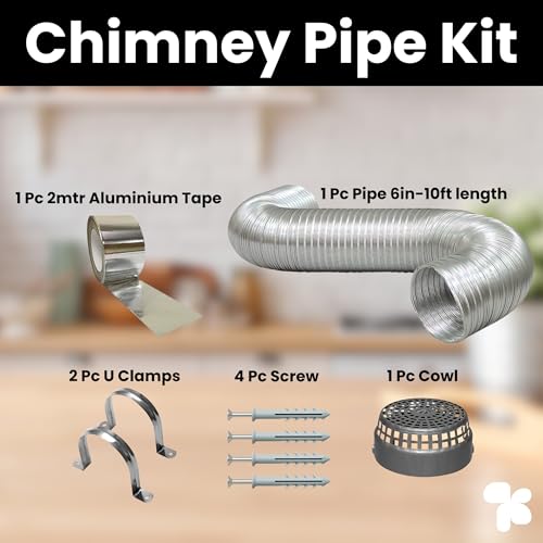 Specification: AMPEREUS® Chimney Pipe 6 Inch | Flexible Kitchen Chimney Duct Pipe 10 Feet with Cowl, Aluminium Tape, Clamp & Screw