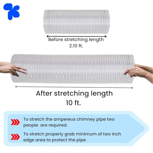 AMPEREUS® Chimney Pipe 6 Inch | Flexible Kitchen Chimney Duct Pipe 10 Feet with Cowl, Aluminium Tape, Clamp & Screw,