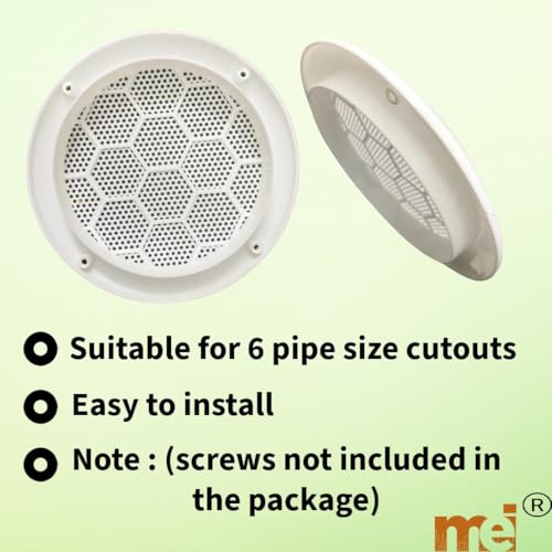 Specification: MEI 6 inch(15.2 cm) Wall Exhaust Fan Chimney Vent Pipe Cover and Mosquito Net Dust Controller with The Provision for Screws,White(3)