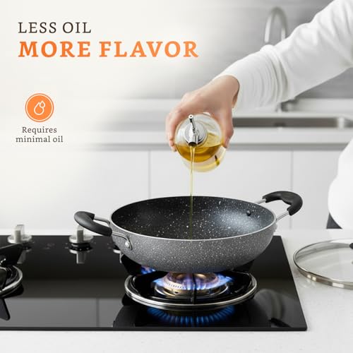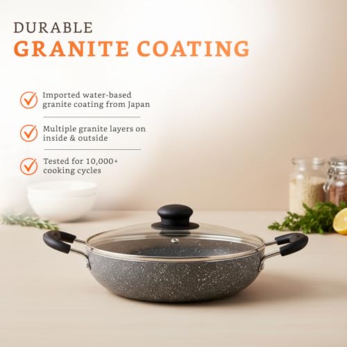 Amazon Solimo Non-Stick Kadai with Glass Lid | Granite Finish | Induction Base | PFOA Free | High Temperature Resistant Exterior Coating | 22 cm |…