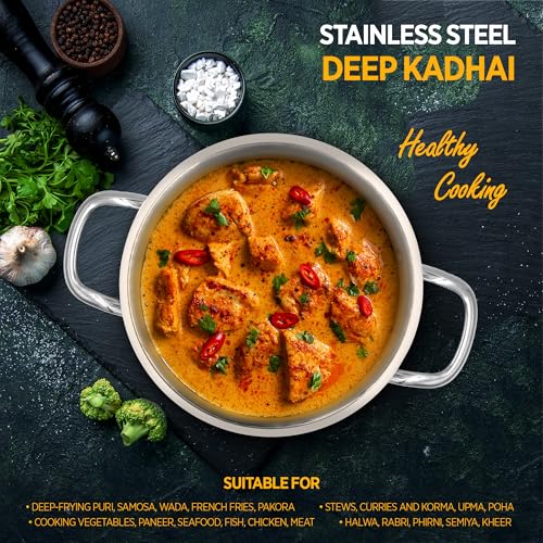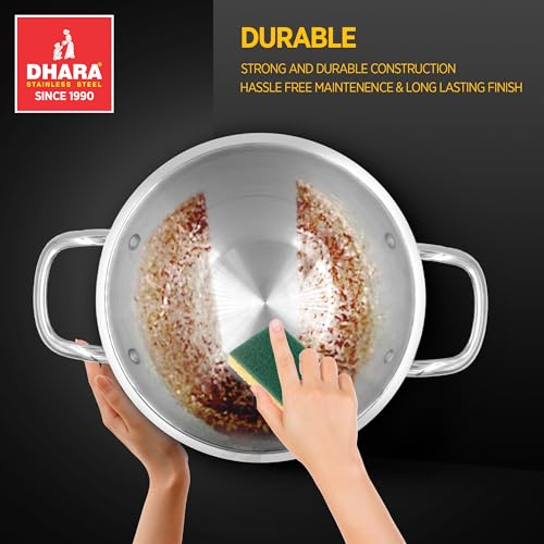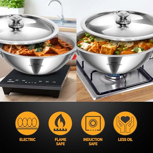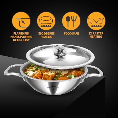 Specification: Dhara Stainless Steel Triply Kadhai with Easy Grip Handle 28 CM, 3.5 Litre | Induction Bottom Kadhai | Deep Frying Kadhai with Lid for Kitchen |…
