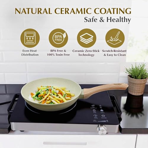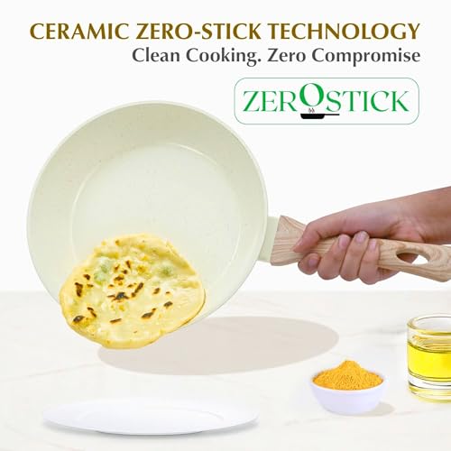- 1. Advanced Non-Stick Ceramic Fry Pan: Enjoy effortless cooking with this ceramic non-stick frying pan designed for healthier meals with minimal oil. The durable non-stick coating ensures easy food release, prevents sticking, and makes cleanup simple, whether youβre preparing omelettes, fish, or stir-fry dishes.