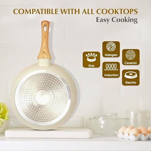 Drumstone π+π ππππ ππππππππ Ceramic Non-Stick Frying Pan 24cm β Omelette, Fish & Fry Pan for Induction and Gas, PFOA-Free, Dishwasher Safe, Ivory,