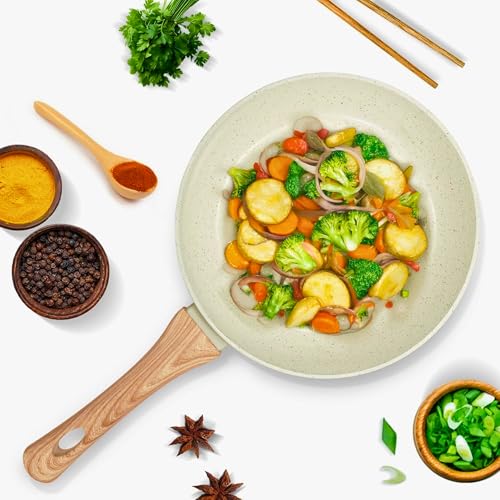 - 6. Ergonomic & Easy to Clean: Features a stay-cool, soft-touch handle for comfort and control during cooking, reducing hand strain. Dishwasher safe for quick cleaning, this lightweight yet sturdy fry pan combines convenience with durability, making it an everyday kitchen essential.