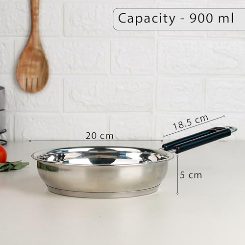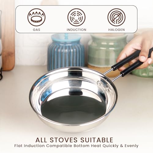 The Earth Store Stainless Steel Frypan 20cm (900ml) Heavy Gauge Sandwich Base | Induction & Gas Compatible | Scratch Resistant Cooking Pan with…,