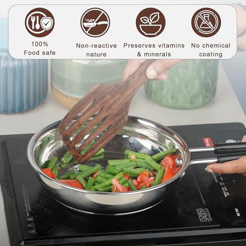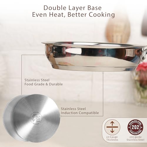 The Earth Store Stainless Steel Frypan 20cm (900ml) Heavy Gauge Sandwich Base | Induction & Gas Compatible | Scratch Resistant Cooking Pan with…