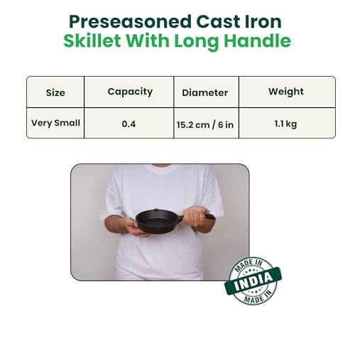 Specification: The Indus Valley Cast Iron Mini Tadka Fry Pan 15.2cm (6 inch) | Pre-Seasoned Small Omelette Pan/Skillet | 0.42L, 1.1kg | Induction Friendly | 100%…