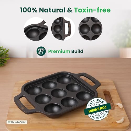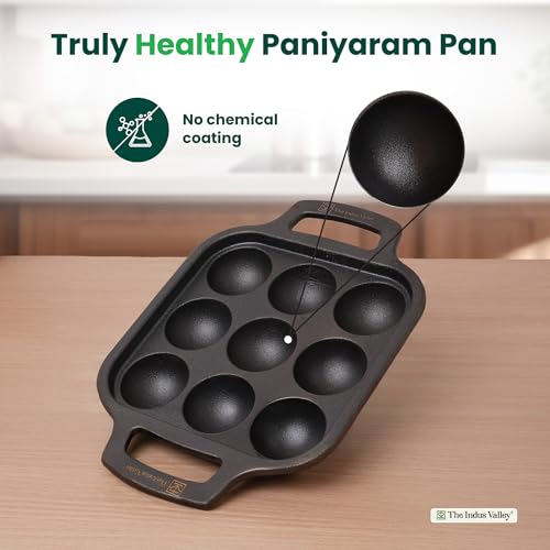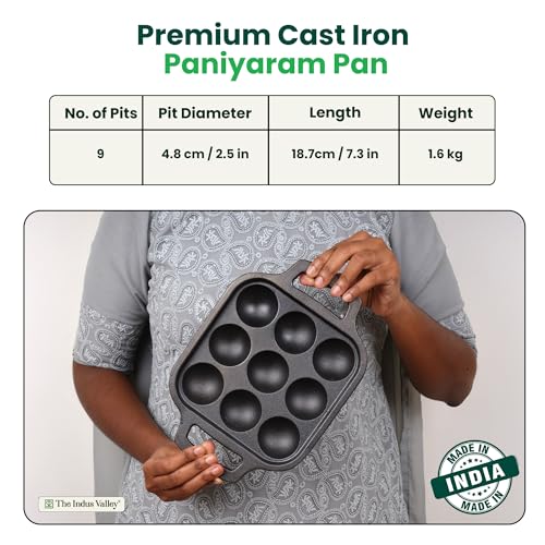 - πͺ 100% HEALTHY: The Indus Valley Premium Cast Iron Paniyaram Pan (9 pit) is 100% natural because it is made of pure cast iron β ideal for those looking for a healthy paniyaram pan or kuzhi paniyaram pan for daily use.
