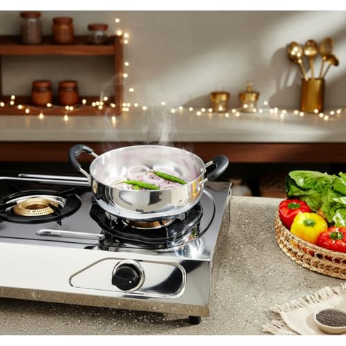 Specification: Amazon Brand – Solimo – Aluminium Kadhai | Induction & Gas Compatible | 22 cm Diameter| 1 L | Polished | Silver