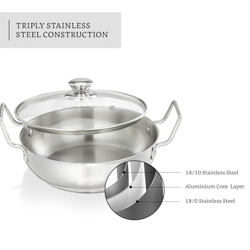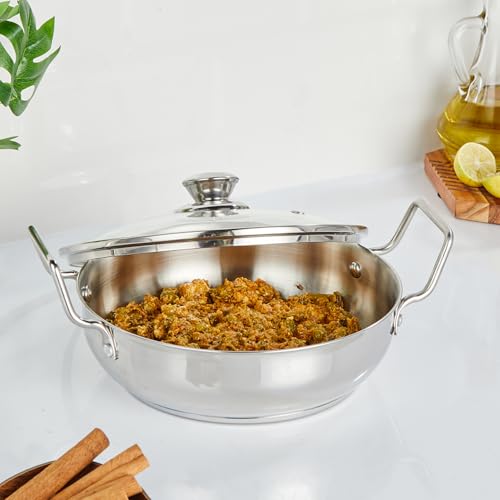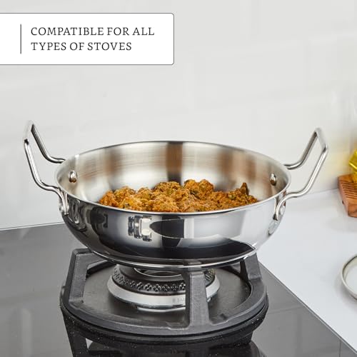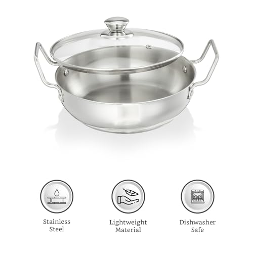 Amazon Brand – Solimo Cookware Karahi/Wok (1.5L) | Food-Grade Stainless Steel | Even Heat Distribution | 1 yr Warranty | Induction & Versatile Heat…