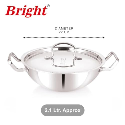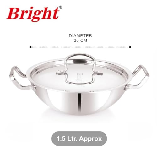 Bright Tri-Ply Deep Kadai Combo – 3 Sizes (20cm, 22cm, 24cm) with Steel Lids | Induction & Gas Stove Ready | 304 Stainless Steel | Even Heating &…,