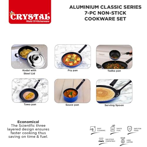 8 reviews for Crystal Classic Series 7-pc Non-Stick Cookware Set, PFOA Free, Tawa, Vagariya, Kadhai with SS Lid, Fry Pan, Sauce Pan, 1 Spatula, Red