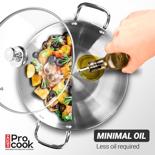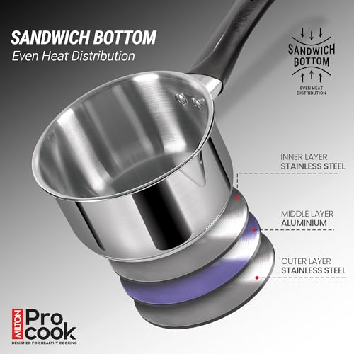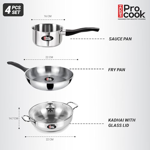 Milton Pro Cook Induction Cookware & Gas Stove Friendly Stainless Steel Sandwich Bottom 4 Pc Kitchen Set | Cooking Pan | Sauce Pan | Kadhai with…,