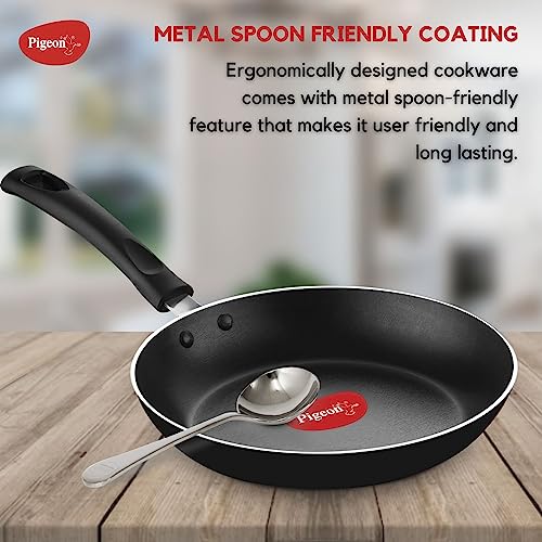 1 review for Pigeon Basics Induction Base Non Stick Aluminium Cookware Set, Including Flat Tawa, Kadai with Glass Lid, and Frying Pan (Black)