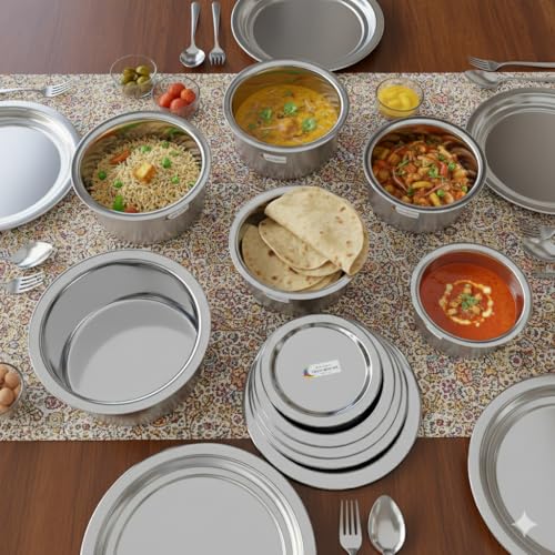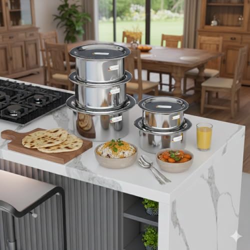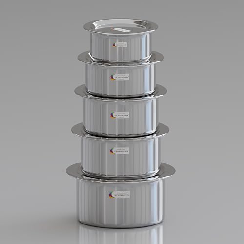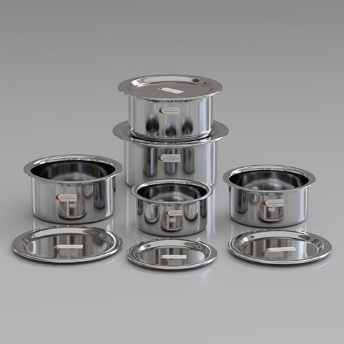 Stainless Steel Tope Patila tepeli Pot pan Utensils Combo cookware Set of 5 PiC Stove and Induction Friendly/Bhagona/Sandwich Bottom Tope/Flat…,