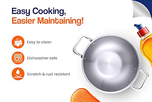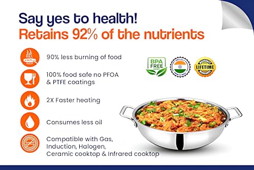 Specification: Triply Stainless Steel Non Stick Extra Deep Cooking Tasla/kadhai for cooking with lid Cookware set Kadai with Lid Induction Bottom & Gas heavy Base…