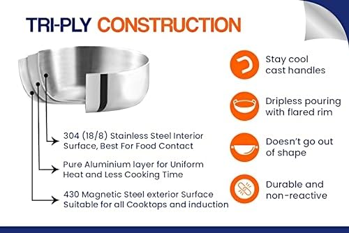 - PREMIUM TRIPLY CONSTRUCTION: Highest quality inner body food grade 18/10 stainless steel for rustfree, middle layer aluminium, magnetic outer layer hygienic cooking.