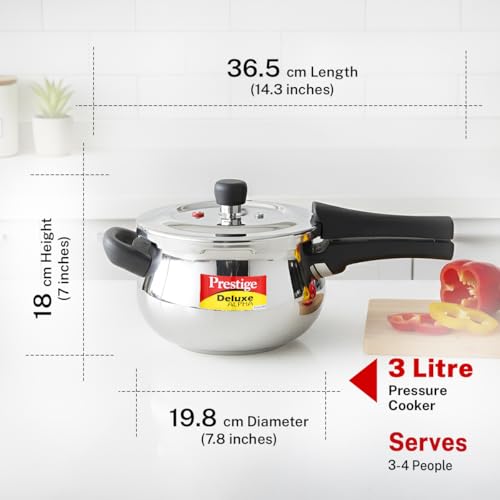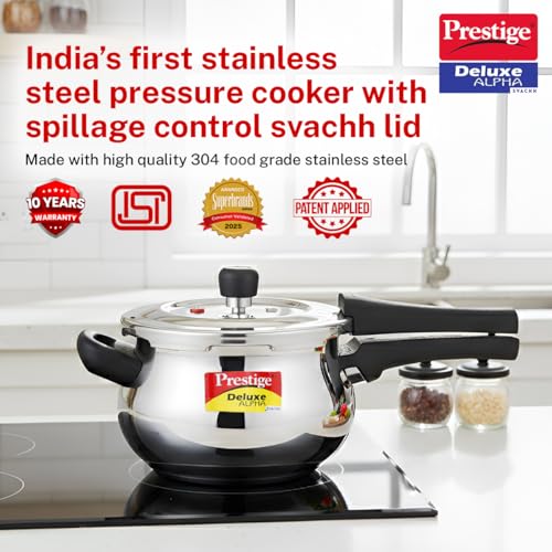 Specification: Prestige 3 Litre Stainless Steel Deluxe Alpha Svachh Outer Lid Pressure Cooker | Mini Handi | 10Y Warranty | Deep Lid for Spillage Control | TRIPLY…