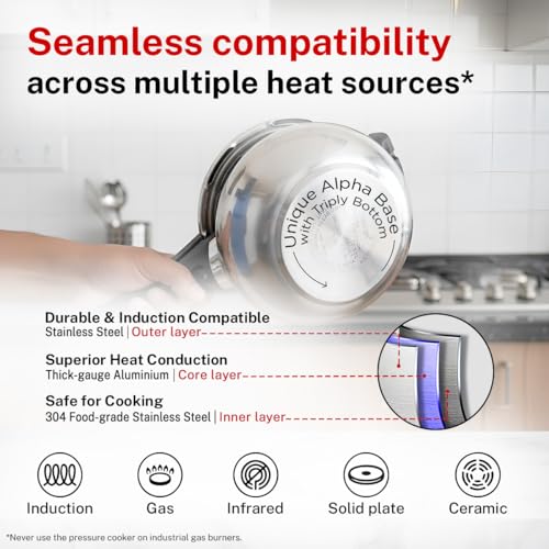 - 𝗨𝗡𝗜𝗤𝗨𝗘 𝗔𝗟𝗣𝗛𝗔 𝗕𝗔𝗦𝗘 (𝗧𝗥𝗜𝗣𝗟𝗬 𝗕𝗢𝗧𝗧𝗢𝗠): Long lasting thick TRIPLY base for even heat distribution and faster cooking.