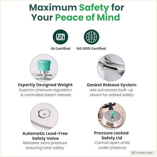 Stainless Steel Pressure Cooker is perfect for small families or quick meals. Its triply stainless steel 3-layer construction ensures even heat distribution and prevents food from burning, while the induction-friendly base makes it suitable for all cooktops. The compact 2L size is lightweight yet sturdy making it easy to handle. Being ISI certified adds to the safety and reliability, and the 5-year warranty gives extra peace of mind. Overall, a durable, efficient, value for money and great-quality pressure cooker for everyday cooking.