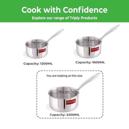 Specification: HAZEL Triply Stainless Steel Induction Bottom Saucepan Milkpan 2.2L | Heavy Flat Bottom Sauce Pan for Tea, Milk & Sauces, 19.2cm