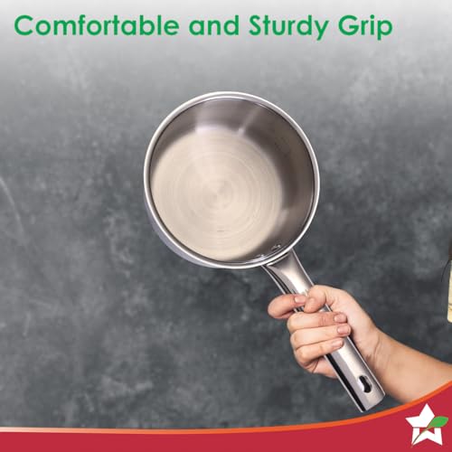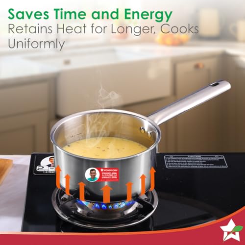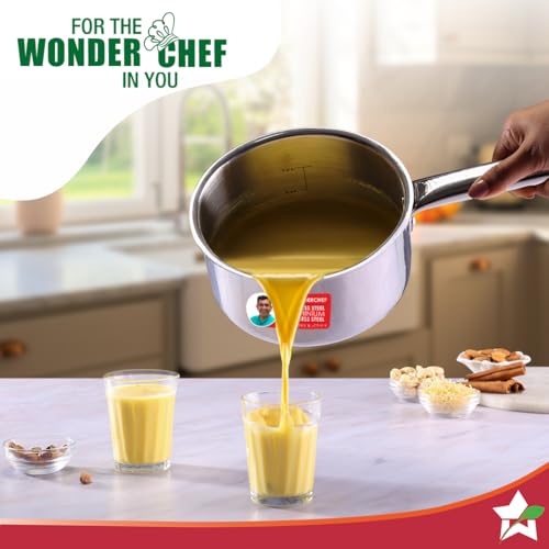 Wonderchef Stella Triply Stainless Steel Milk Pan | 16 cm, 1.7 litres | Compatible with Gas Stove, Induction, Ceramic Cooktop | Non-Toxic | Uniform…,