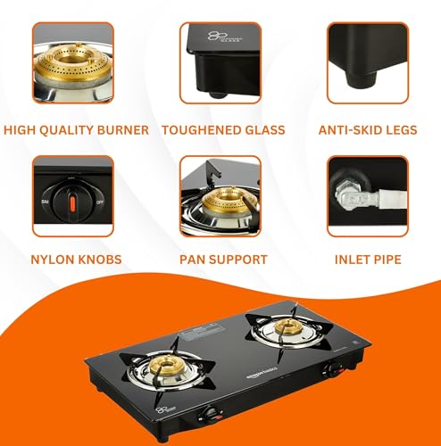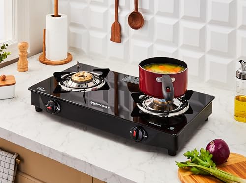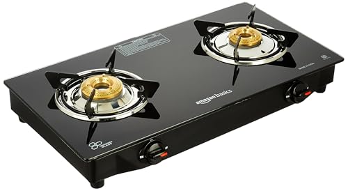 Specification: Amazon Basics 2 Burner LPG Gas Stove with Toughened Glass-top | Tri-pin Brass Burners with spill-proof and easy-clean design | Ergonomic Knobs,…