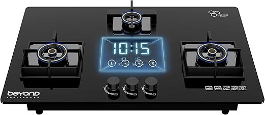 Beyond Appliances Dorado 3 Burner Smart Glass Hobtop Gas Stove | Auto Ignition | Digital Timer | Flame Failure Device | Toughened Glass | LPG & PNG…