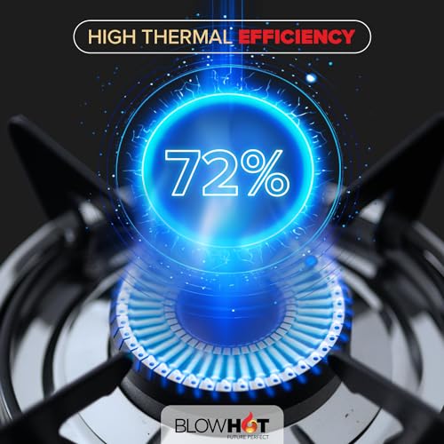 BLOWHOT Emerald Heavy Tornado Brass 2 Burner Auto Ignition Gas Stove – Toughened Glass Cook Top -ISI certified- Black Powder Coated Body – 2 Year…