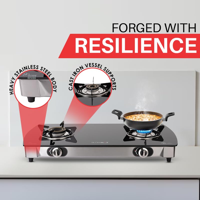 BLOWHOT Heavy Brass Burner 2 Burner Manual Gas Stove – Toughened Glass Cook Top – ISI certified-Stainless Steel Frame – 2 Year Warranty By Blowhot…