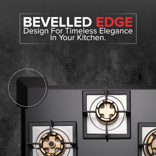 - BEVELLED TOUGHENED GLASS TOP : 8 mm beveled toughened glass top; Heavy Brass Burners suitable for Indian cooking. BURNERS : One 125mm Jumbo Triple Ring Burner With Multi Flame Function, Two 100mm Double Ring Burner, One 70mm Brass Burner
