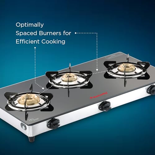 Butterfly Radiant Jumbo 3 Burner Glass Top Gas Stove | Tri-pin Brass Burners | 6mm Toughened Glass | Detachable Spill Tray | Enamel Pan Supports |…