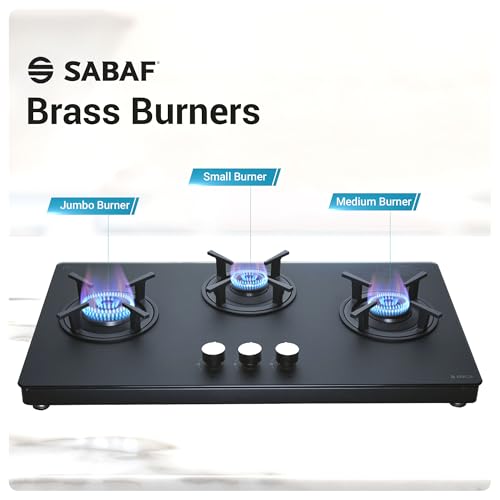- SABAF Brass Burners: Includes 1 Jumbo, 1 Medium, and 1 Small burner for high-efficiency cooking performance and durability.