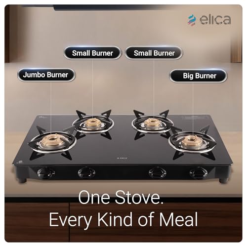 At amazon.in you can purchase Elica 4 Burner Gas Stove | CT VETRO 774 J | Brass Burners | Toughened Glass Top | ISI Certified | Black for only ₹ 5,999