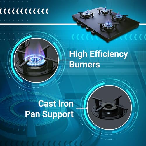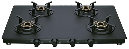 Specification: Elica 4 Burner Manual Ignition Gas Stove | MATT ONYX 774 CT VETRO 2J BK | High Efficiency Direct Flame | Matt Finish Toughened Glass | Cast Iron…