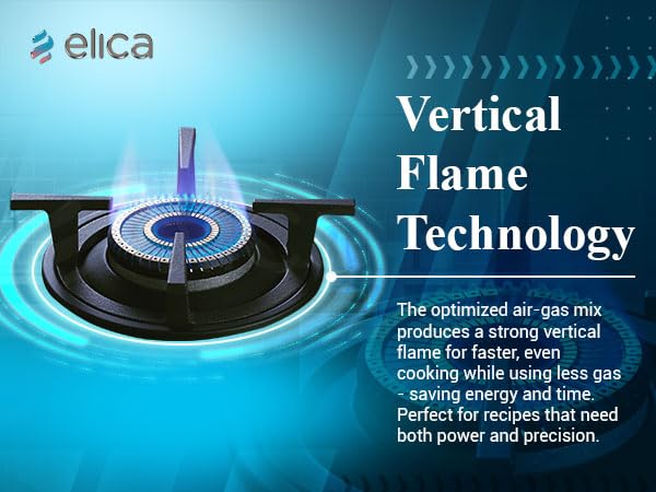 - High-Efficiency Vertical Flame Burners: Precision-engineered to hold the ideal air – gas mixture, the vertical flame design ensures faster cooking and better heat distribution – perfect for Indian kitchens.