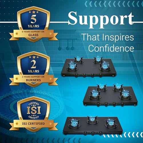 - Matt Finish Toughened Glass Top – Heat, stain, and scratch-resistant, ideal for oily tadka, spicy curries, and frequent use.