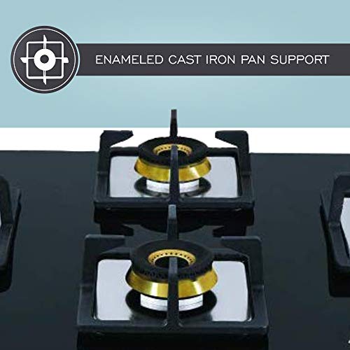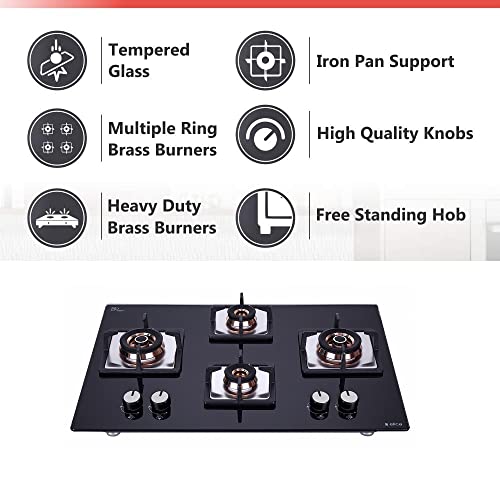 Specification: Elica Hob 4 Burner Auto Ignition Glass Top – 2 Small and 2 Medium Brass Gas Stove (FLEXI FB HCT 470 DX)