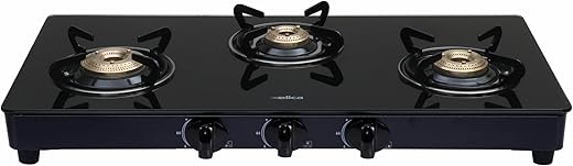Specification: Elica Vetro 3 Burner Auto Ignition Gas Stove | 773 CT VETRO BLK AI | Brass Burners | Toughened Glass Top | Euro Coated Pan Support | 7-Year Glass…