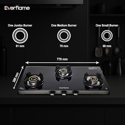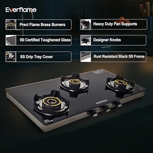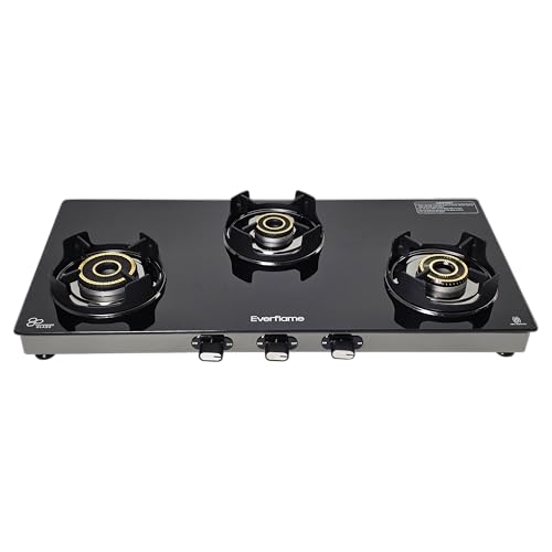 Everflame Magnus 3 Burner Glass Cooktop | Durable Toughened Glass Gas Stove | ISI Certified | NexGen 5G Technology Brass Burner | 2 Years Warranty…
