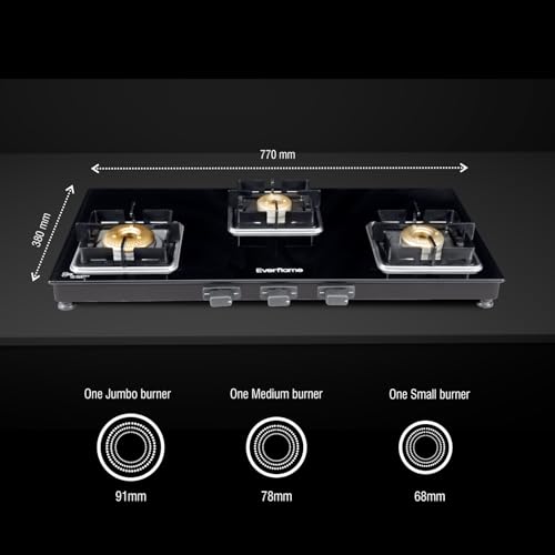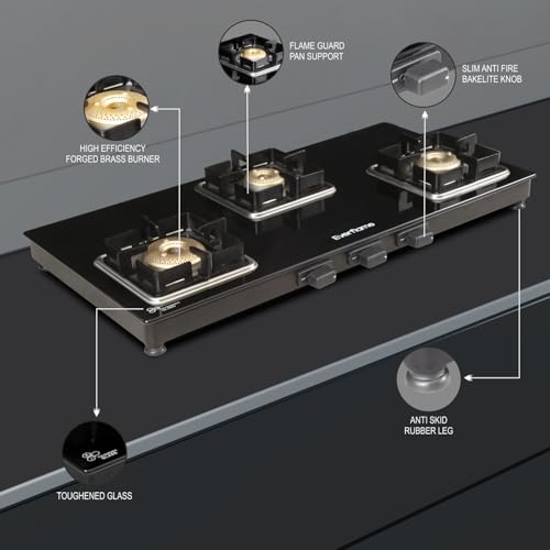 Everflame Matrix 3 Burner Glass Gas Stove | Toughened Glass Cooktop | ISI Approved | 5G Forged Brass Burner (Gas Saver Technology) | 5 Years…
