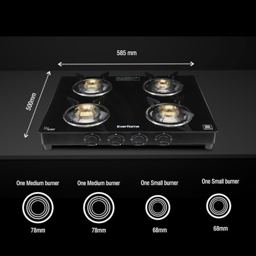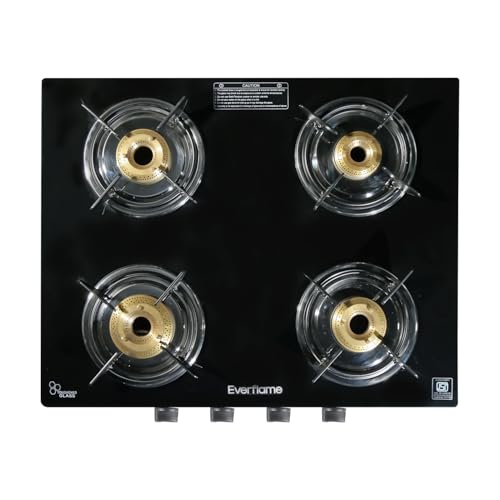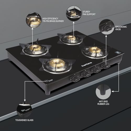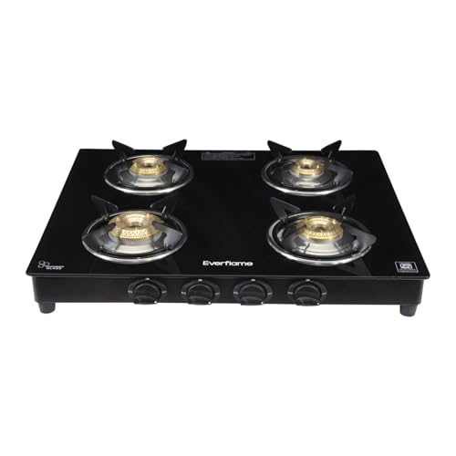 Specification: Everflame Titan 4 Burner Gas Stove Ultra Slim Body | Durable Toughened Glass Cooktop | ISI Certified | Manual Ignition| 5G Forged Brass Burner | 2…
