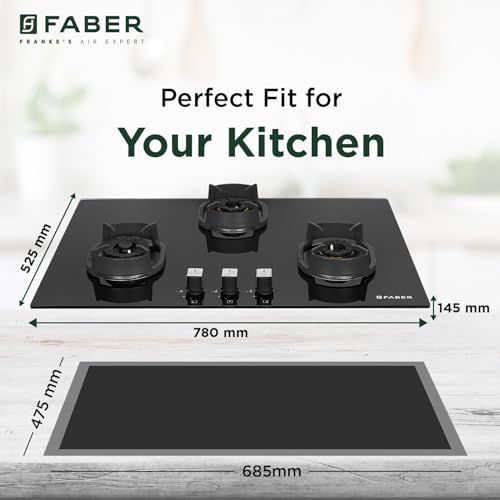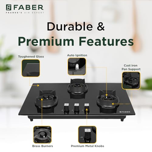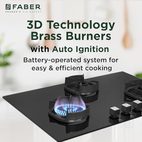 Faber 3 Burner 78cm Eros Hob |Auto-Ignition|Metal Knobs| Cast Iron Pan Support |Hob/Cooktop Hybrid| Black Glass Finish |5 Yrs Warranty on Glass &…