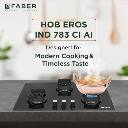 Set Alert for Product: Faber 3 Burner 78cm Eros Hob |Auto-Ignition|Metal Knobs| Cast Iron Pan Support |Hob/Cooktop Hybrid| Black Glass Finish |5 Yrs Warranty on Glass & Valve,2 Yrs on Burner by Faber|Hob Eros IND 783 CI AI - Rs. 17,990