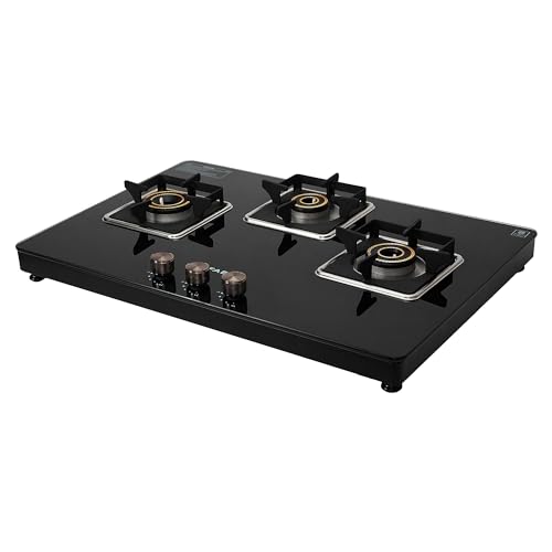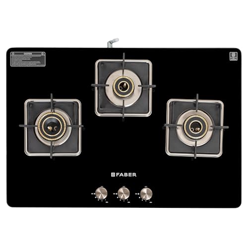 Faber 3 Burner Auto-Ignition Cooktop|NiOS AUTO 3BB BK|Battery Operated|Metal Knobs|Brass Burners|Cast Iron Pan Support|Black Glass Finish|7 Yrs…
