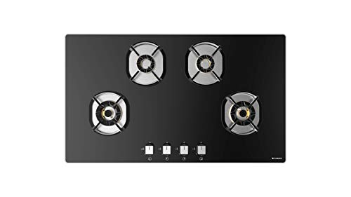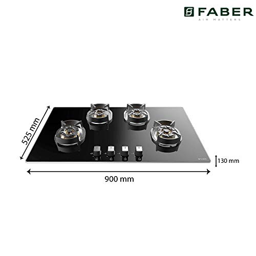 Specification: Faber 4 Brass Burner Hob Cooktop Hybrids in Built Auto Electric Ignition (Nexus HT904 CRS BR CI) Black, Glass, Mild Steel