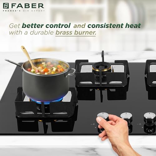 Faber 4 Burner HCT 90 cm Hob| Brass Burners| Bakelite Knobs| Cast Iron Pan Support| Hob/Cooktop Hybrid| Toughened Glass |Auto Ignition| 2 Yrs…